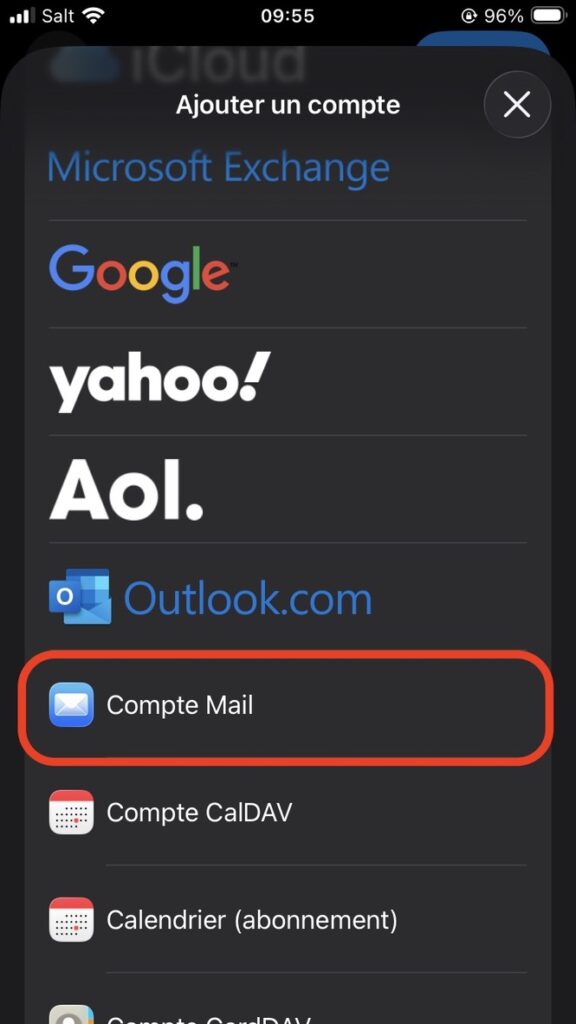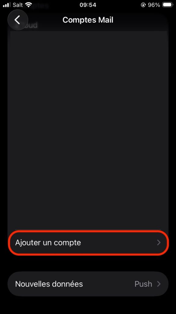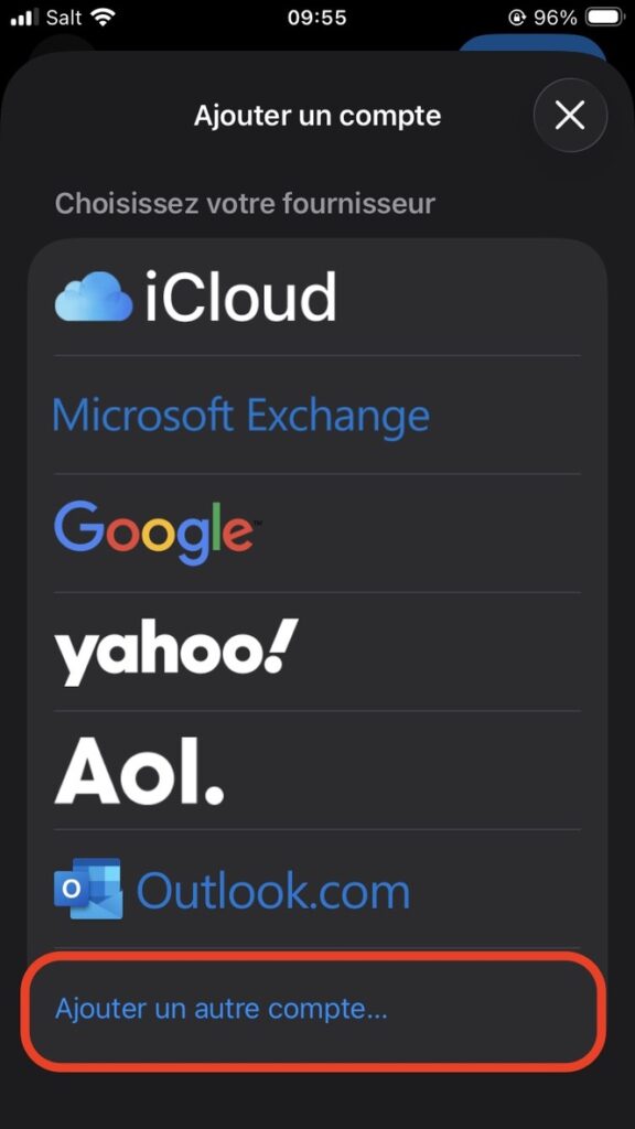Touchez « Ajouter un autre compte… » en bas de l’écran :