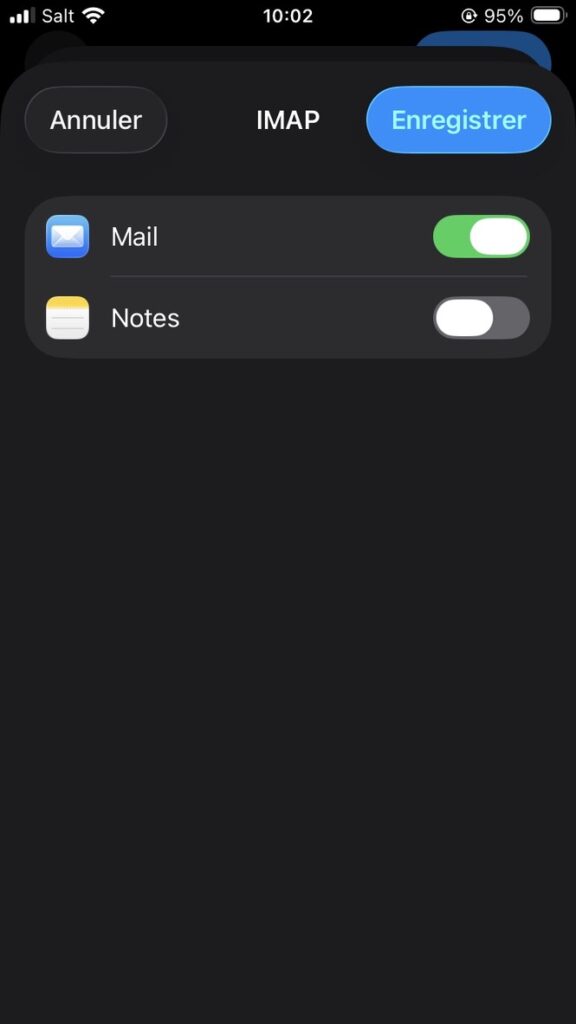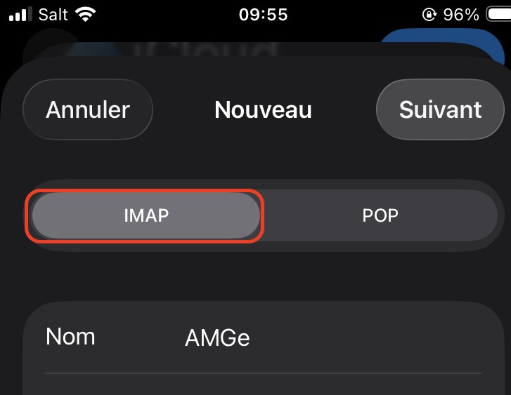Veillez à rester dans l’onglet « IMAP » et non « POP » pour réaliser les prochaines étapes :