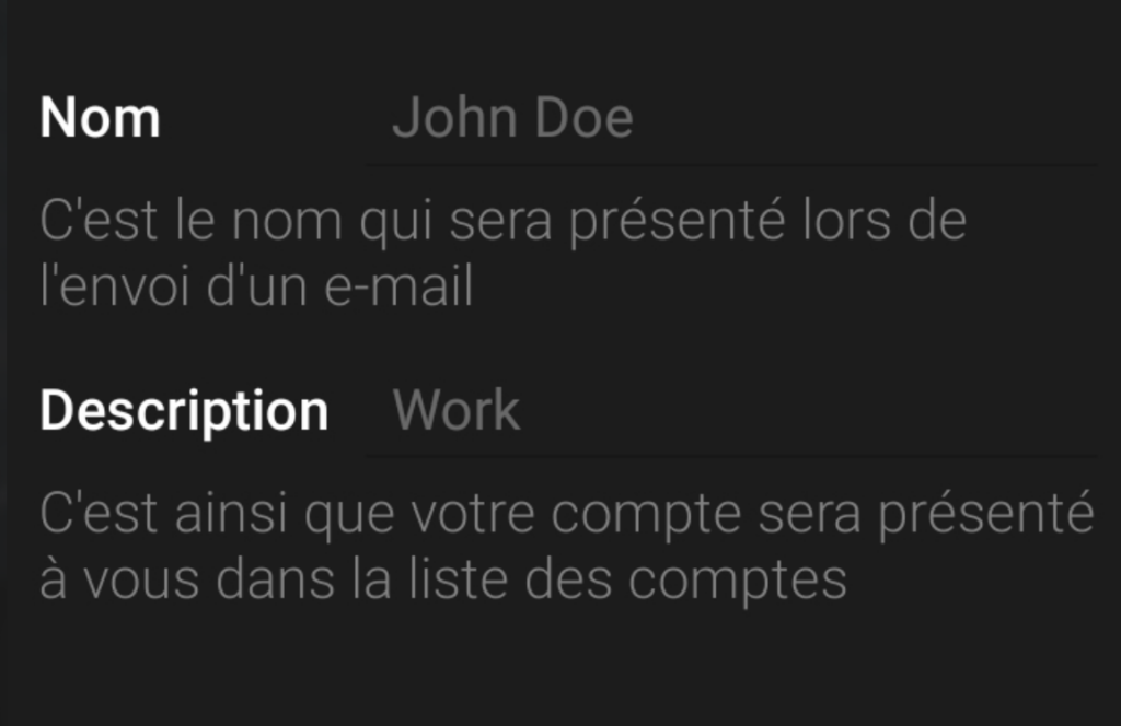 Inscrivez votre prénom et nom ainsi que le nom souhaité pour reconnaitre facilement votre boîte e-mail.