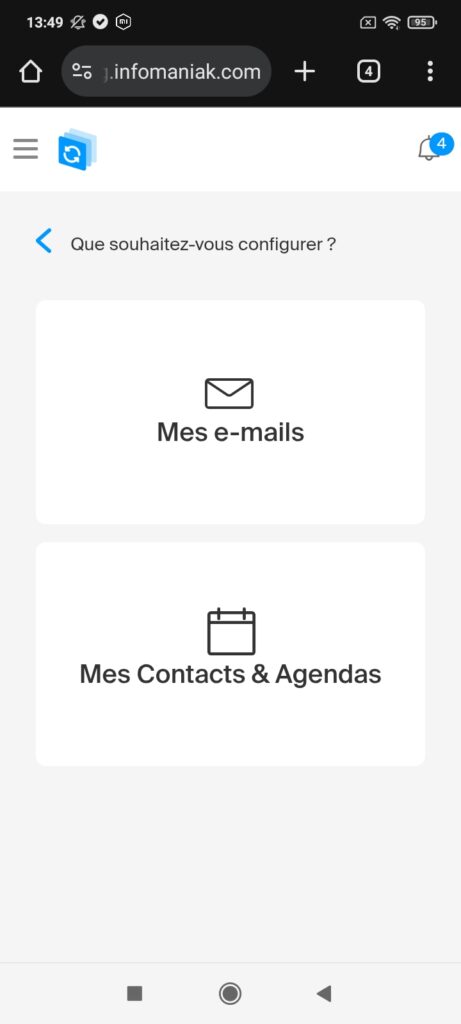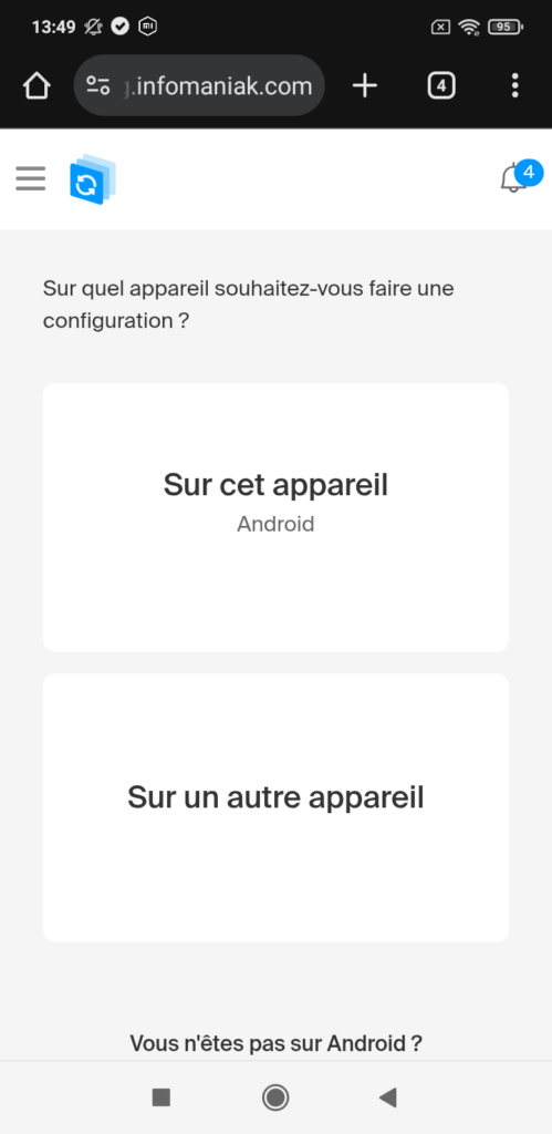 Scannez le code QR ci-dessous ou connectez vous directement sur le site config.infomaniak.com depuis votre smartphone. Saisissez les informations de connexion de votre compte Infomaniak.