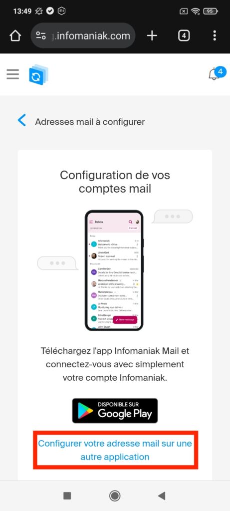 Appuyez sur « Configurer votre adresse mail sur une autre application » tout en bas de la page.