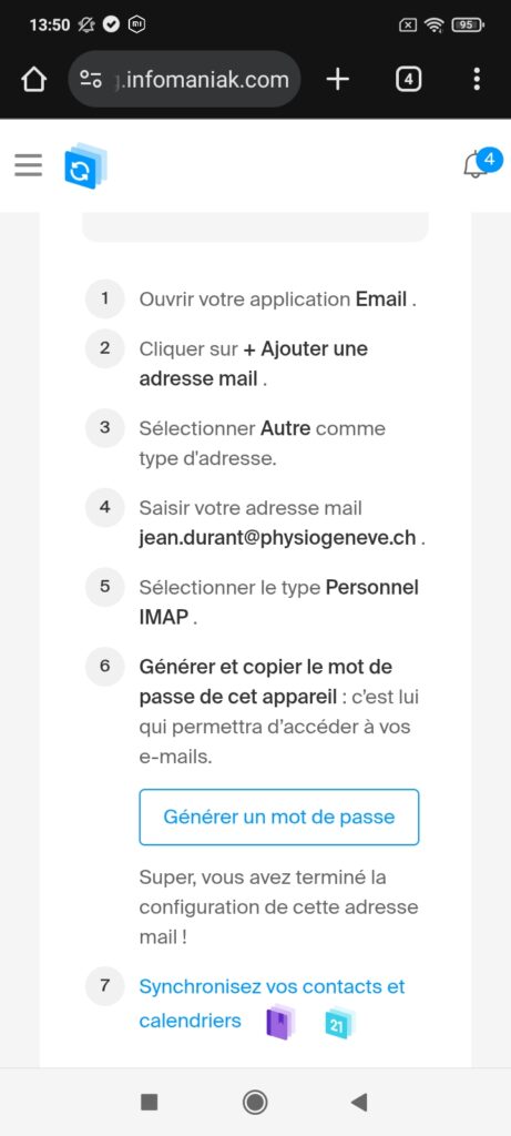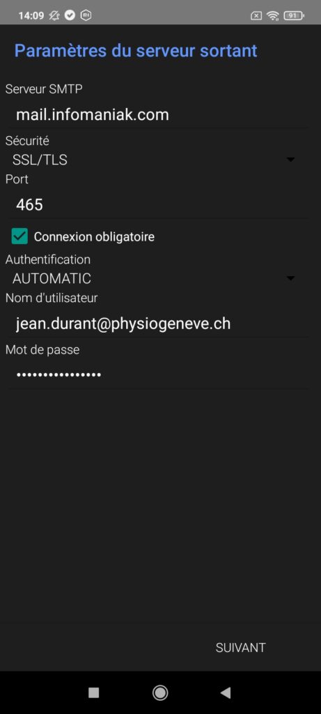 - Serveur SMTP : mail.infomaniak.com