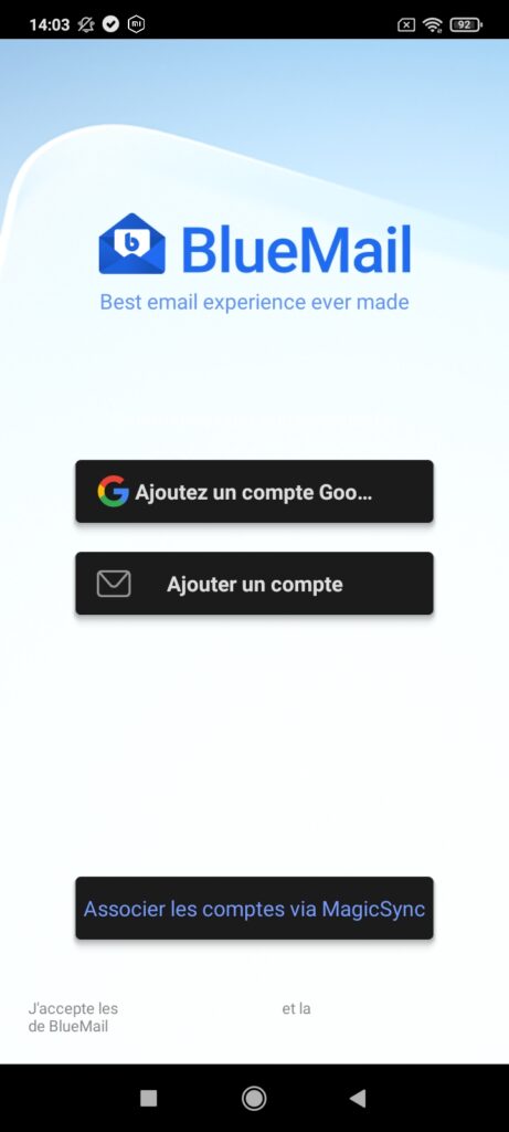 Ouvrez votre application BlueMail et ajoutez un nouveau compte.