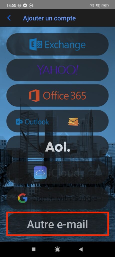 Configurer votre adresse sur BlueMail pour Android