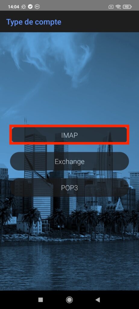 Sélectionnez « IMAP » comme type de compte.
