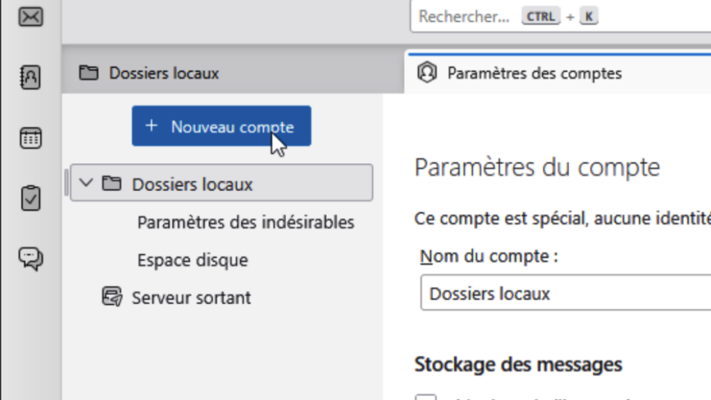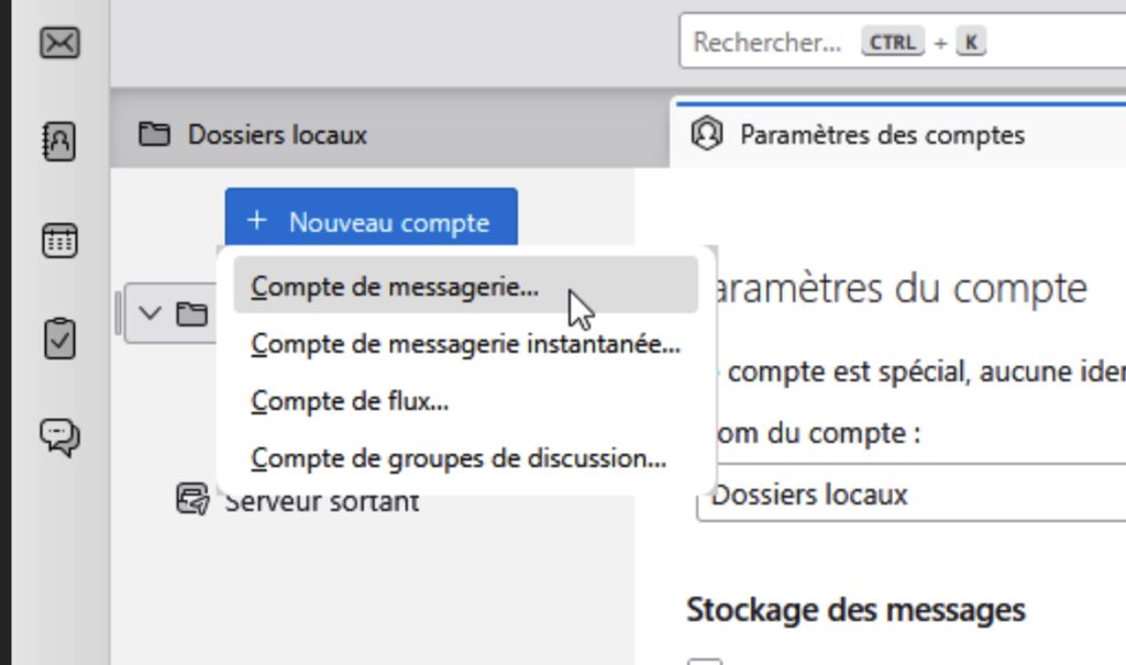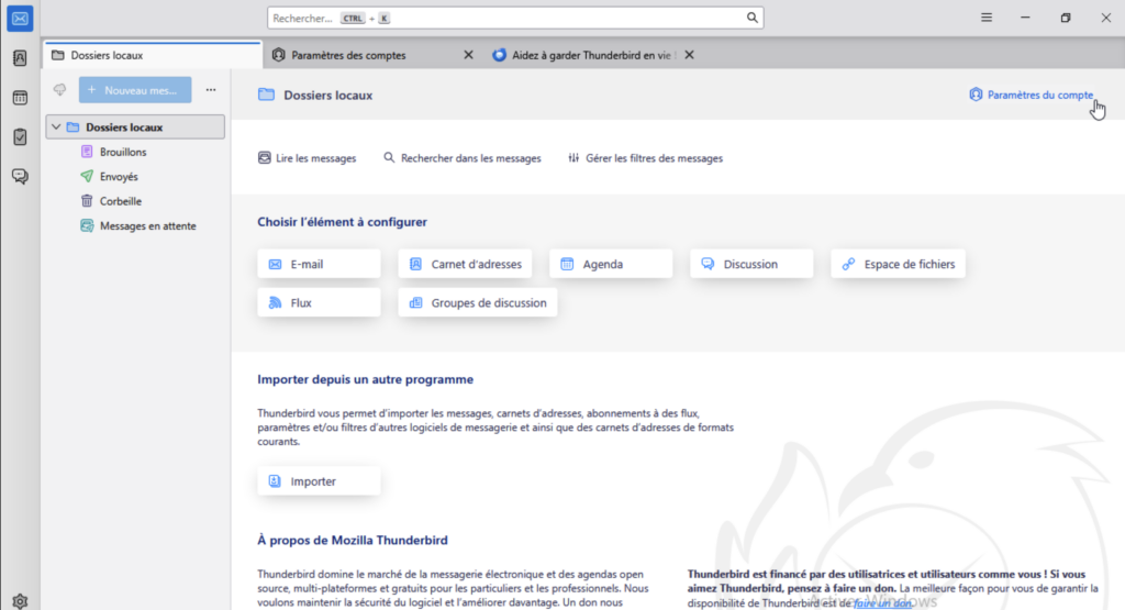 Démarrez Thunderbird et ouvrez les « Paramètres du compte ».