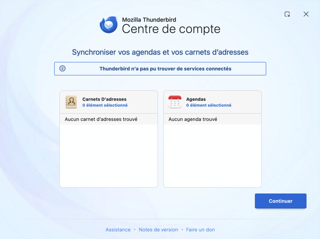Tous les réglages ont été détectés automatiquement, vous pouvez cliquer sur « Continuer ».
