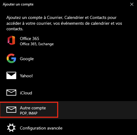 Choisissez « Autre compte POP/IMAP » :