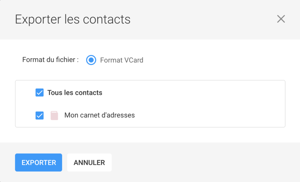Choisissez les contacts souhaités et cliquez sur « Exporter » :