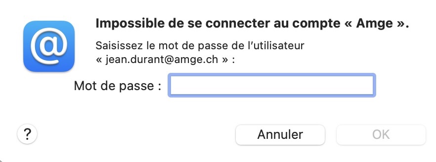 Si vous avez modifié votre mot de passe de messagerie, le logiciel Mail ne peut plus relever votre courrier ou envoyer d’e-mails car il ne connait que votre ancien mot de passe qui n’est plus valable.